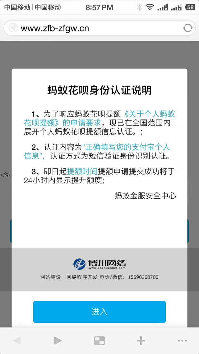 以上幾點已經(jīng)完全認定這是一個釣魚網(wǎng)站無疑了。至于一開始短信發(fā)信人顯示為支付寶官方號碼,博川的觀點是偽基站導(dǎo)致,因為專業(yè)所限,不做深入討論。